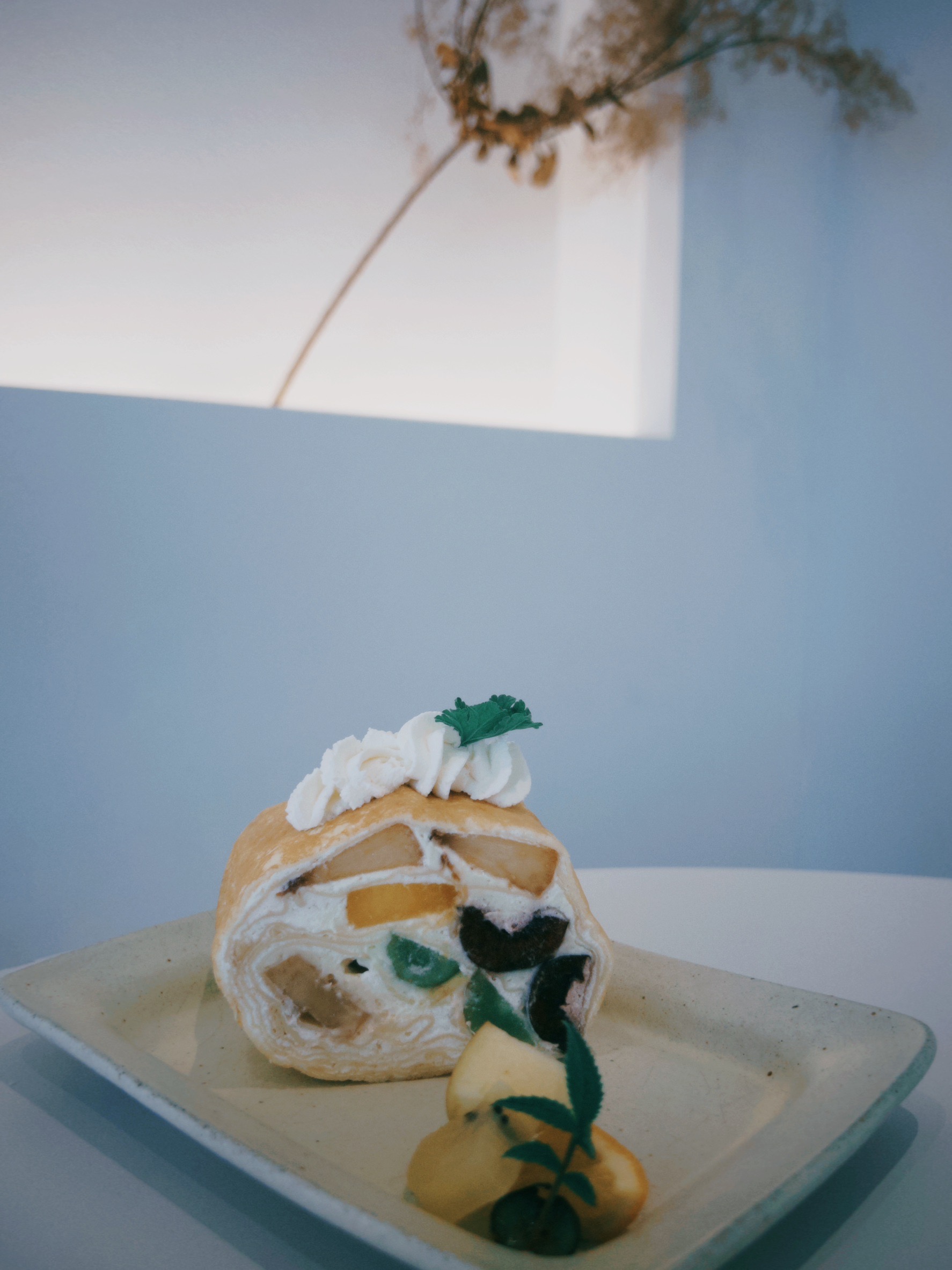 店裡的甜點精緻可口,但最讓人難忘的,還是那份帶著溫度的蘿蔔糕——以在來米磨漿為底,細緻綿密,搭配肉末與油蔥酥,入口的香氣樸實卻深刻,彷彿把記憶裡的家常味重新端上桌。