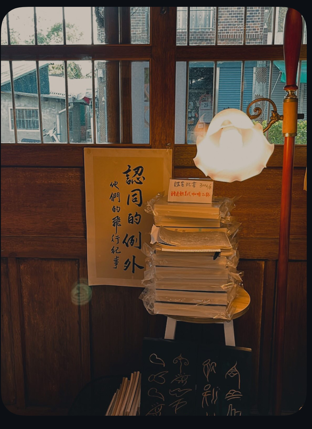 那天,我帶著孩子、先生、婆婆與大姑同行。雖然他們本就是嘉義人,卻也是第一次踏進這裡。二樓的小隔間裡擺著二手書,氛圍靜謐。先生忍不住笑著說:「我好想待在這裡一整天。」